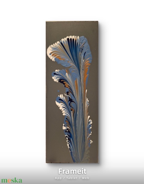 Kék trombitavirág- elegáns, absztrakt akril pouring festmény vásznon.