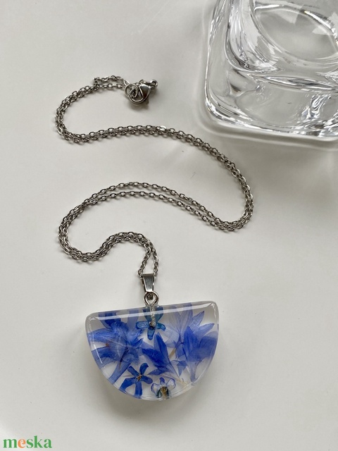 Búzavirág és nefelejcs-félkör műgyanta medál
