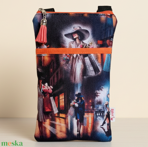 2in1 mobiltartó táska crossbody válltáska fekete/narancs 13 x 21 cm