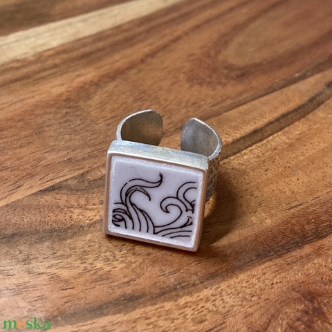Mentett porcelán darabok - állítható négyzetes gyűrű - grafikus