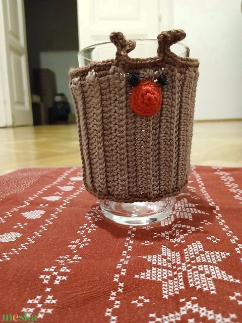 Horgolt szarvasos pohármelegítő