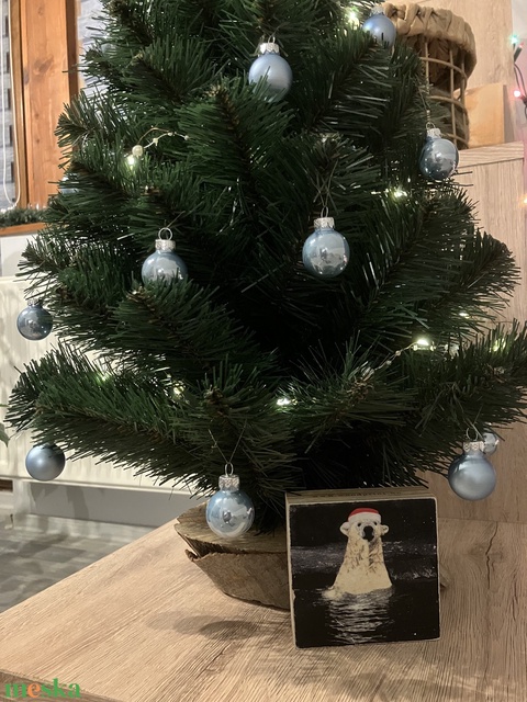 Mini fa dekoráció / Jegesmedve télapó sapkában