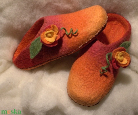 Nemezpapucs rávarrt nemezrózsákkal házicipő, mamusz 38-as méret