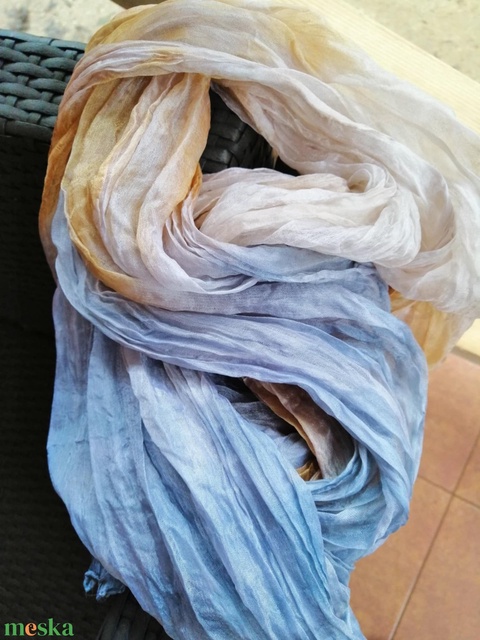 Gyűrt,batikolt valódi selyemsál Bézs és kék