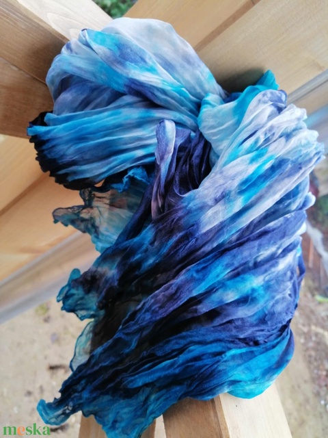 Gyűrt,batikolt valódi selyemsál -Türkíz,navykék árnyalatokkal