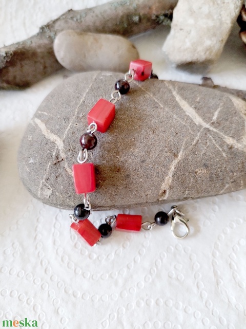 - Anyaga: korall, gránát, acél lánc, acél szerelékek