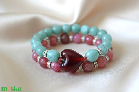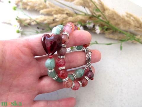 Szívközpont – vörös achát szívvel készült aventurin bohém karkötőszett