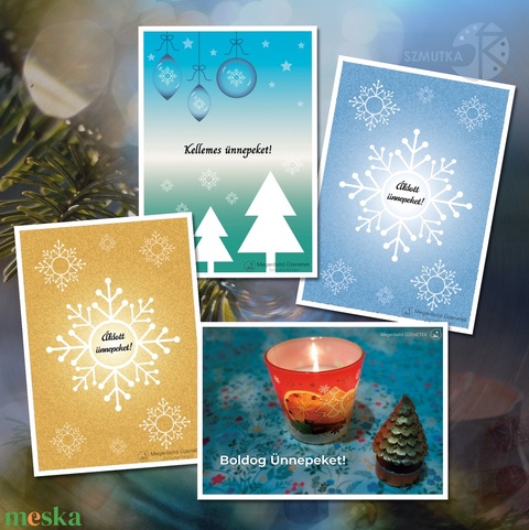 4 db-os Karácsonyi lap, képeslap, ajándékkísérő csomag