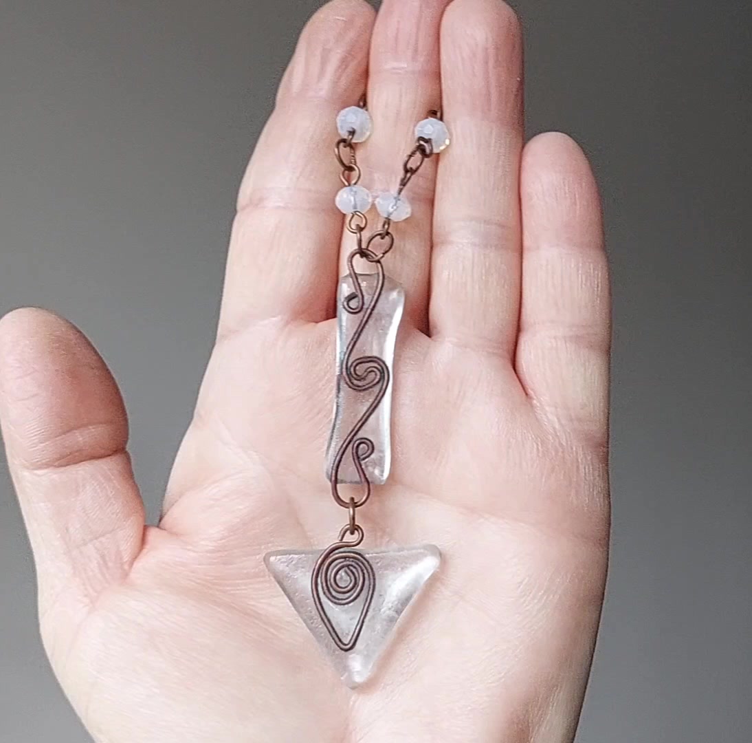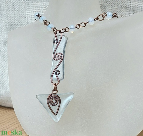 Drót nyaklánc olvasztott üveggel és gyöngyökkel