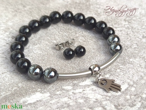 ásványgyöngyök, gumidamil, nemesacél alkatrészek