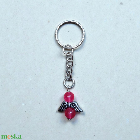 Rózsaszín achát angyal kulcstartó