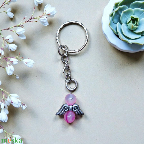 Rózsaszín achát angyal kulcstartó