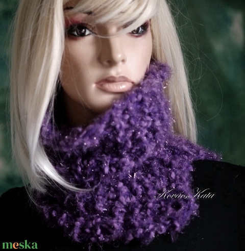 TEKNŐCKE / lila - vastag kézzel kötött kámzsa, csősál, nyakmelegítő