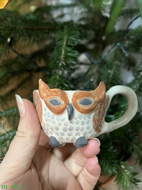Bagoly formájú kézműves pálinkás pohár / mini csésze. Kézzel készült, egyedi darab