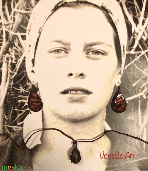 Márványhajnal pillanat tűzzománc Fülbevaló-nyaklánccal