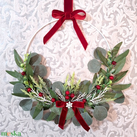 - Anyaga: műnövény, fémkarika, bársony szalag, fafigura