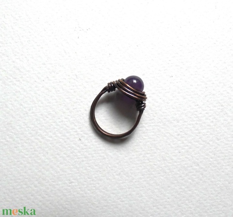 Mélylila rézgyűrű Ametiszt ásványgyönggyel