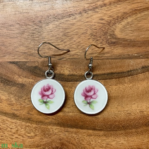 Mentett porcelán darabok - nemesacél fülbevaló, virágos, lógós