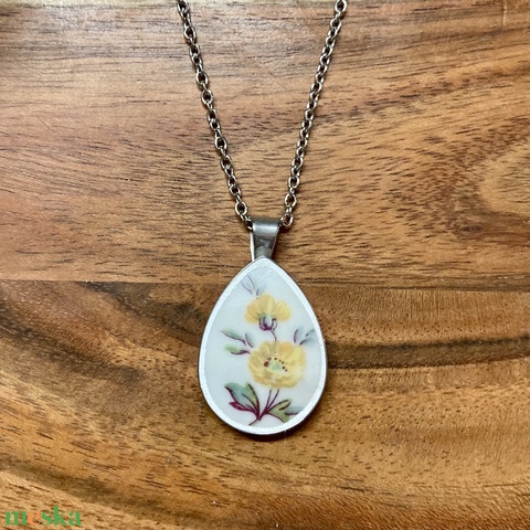 Mentett porcelán darabok - nyaklánc - nemesacél csepp medálos