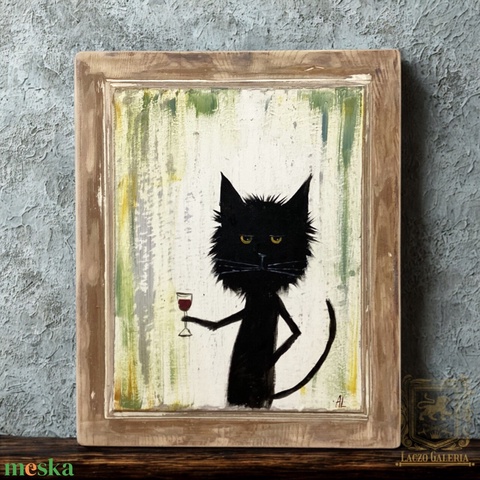 Ez egy ilyen nap - Laczó Ágnes kortárs festő/grafikus művész- Eredeti Akril Festmény, Fekete macska