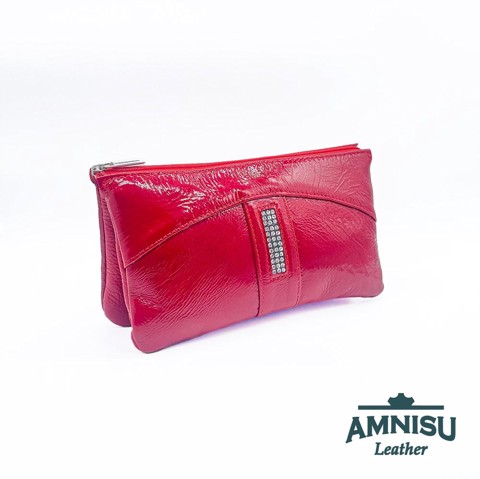 Piros gyűrt lakk egyenes kristály köves női pénztárca G5009