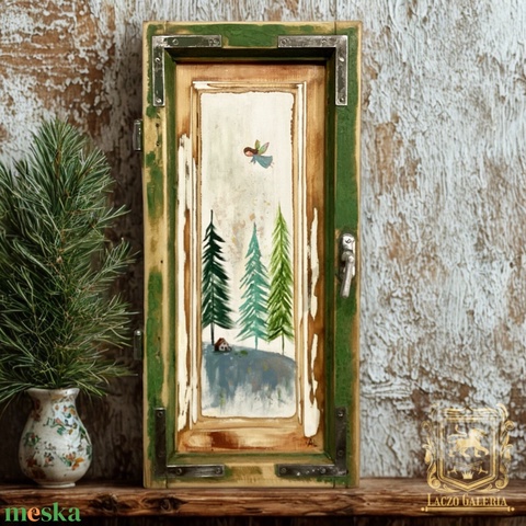 Fenyők felett Angyalka - Ajándék ötlet, Rusztikus Dekoráció, Fatábla, Ablak, Havas, Tél, Fenyőfa, Gyerekszoba