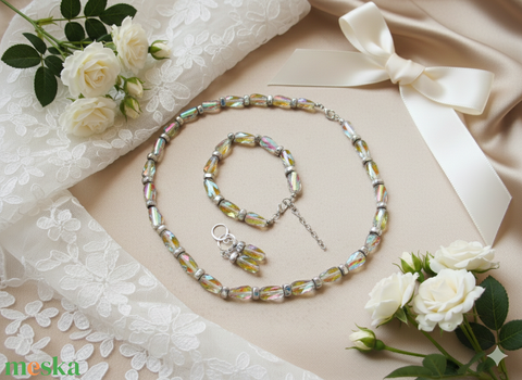 Ragyogó Hematit és Üvegkristály Ékszerszett Nyaklánc, Karkötő és Fülbevaló Kézzel Készített Elegancia