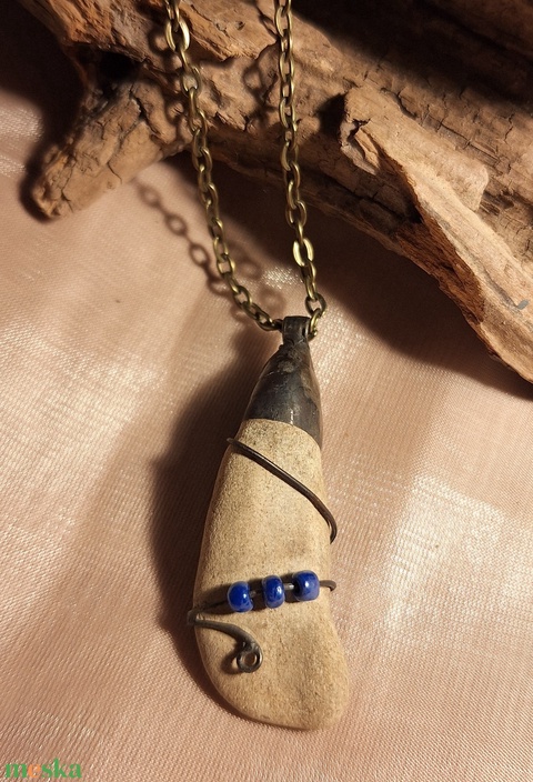 Antik hatású kő medál egyedi gyöngyös díszítéssel
