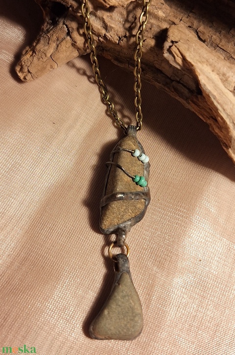 Antik hatású gyöngyökkel díszített kő medál