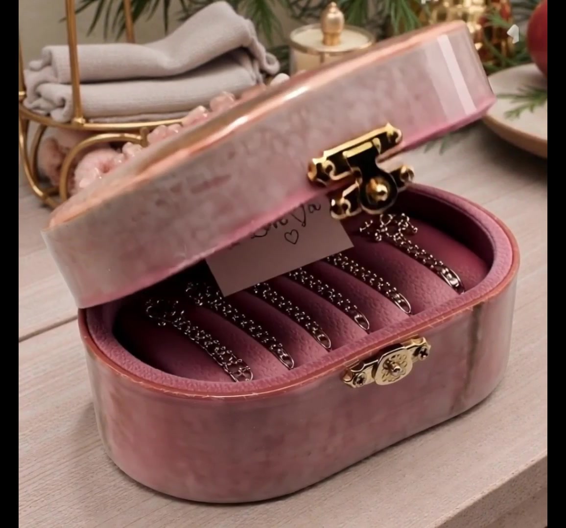 Ovális ékszerdoboz – púder rózsaszín kvarc ihletéssel