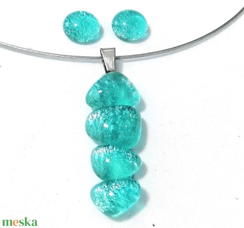 AKCIÓ! NEMESACÉL! Türkiz kavicsok dichroic ékszerszett.