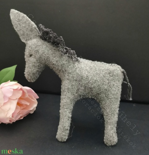 SZAMÁR CSACSI TERMÉSZETES ANYAGOK GYAPJÚFILC GYAPJÚ 100 %-OS PAMUTFONAL EGYEDI KÉZMŰVES ÁLLATFIGURA WALDORF NEMEZ JÁTÉK