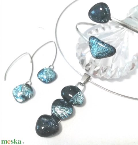 AKCIÓ! NEMESACÉL! Kék-ezüst kavicsok dichroic ékszerszett.