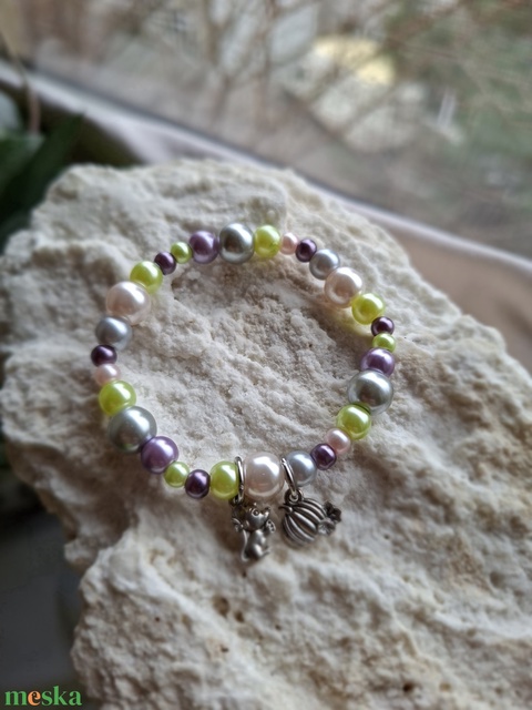 Egy kézzel készült, mesés karkötő (Tekla gyöngyből, kb. 14,5-15cm)
