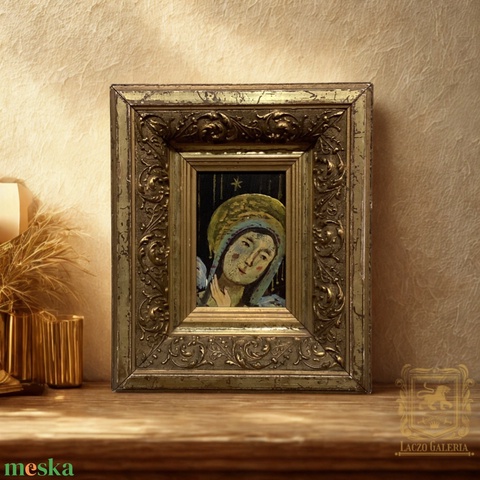 Madonna - Női portré - Eredeti Akril festmény Szép régi cifra keretben - Szent - Karácsony - Laczó Ágnes