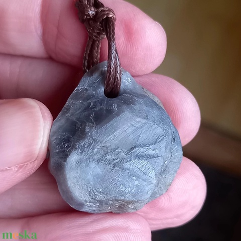 Nyers zafír medál átfúrva és pamutszálra fűzve, A szív és lélek békessége, Zafír medál, Natúr ásvány