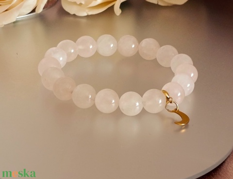 Rózsakvarc ásvány karkötő nemesacél Hold medállal