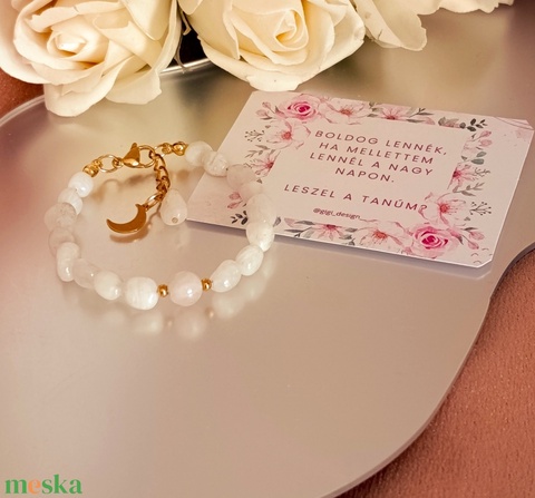 Szivárvány holdkő és madagaszkári rózsakvarc kapcsos női ásványkarkötő Hold medállal - tanúfelkérő