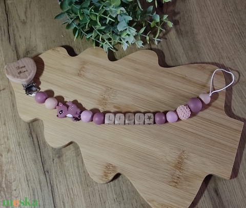 szilikon, szatén zsinór, fa klipsz, horgolt gyöngy