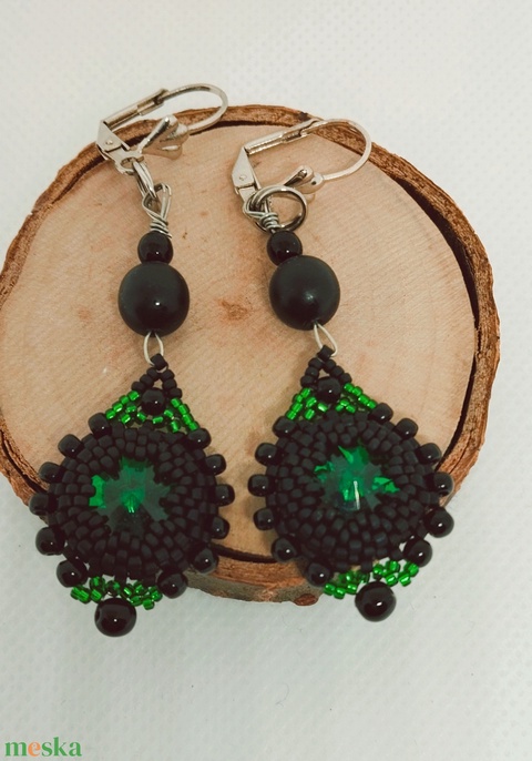 Smaragdzöld-fekete csillag fülbevaló