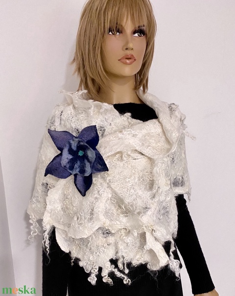 Nemezelt feher csipkeszeru konnyu gyapju sal