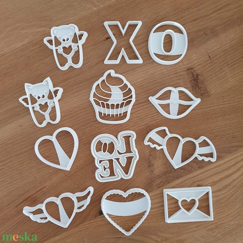 Valentin-napi sütikiszúró szett – szívek, XOXO, love, csók minták