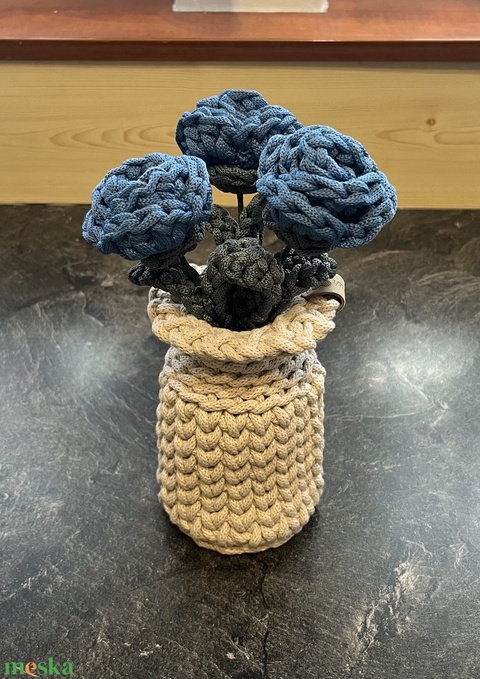 Horgolt rózsák vázával.