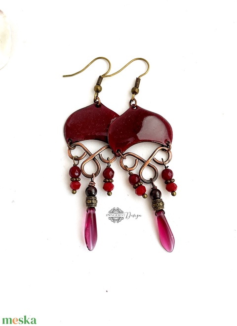 vörösréz, ékszerzománc, üveggyöngy, ásványgyöngy