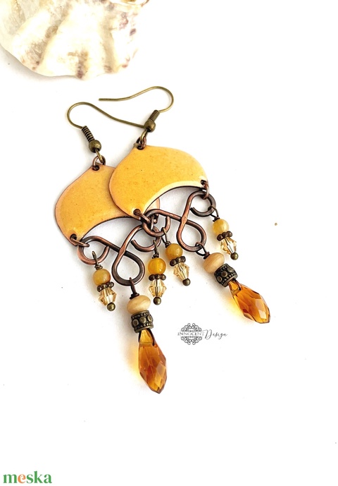 - Anyaga: vörösréz, ékszerzománc, üveggyöngy, ásványgyöngy