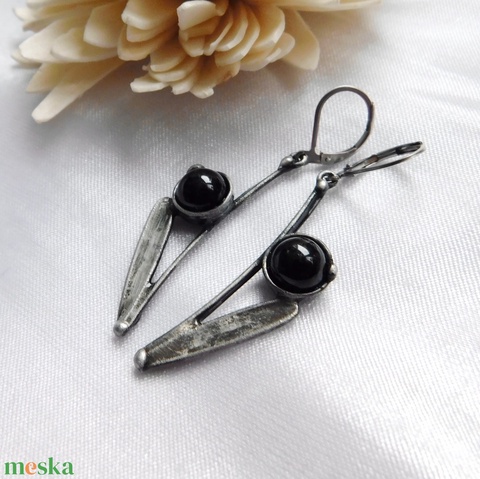 A fülbevaló tiffany technikával készült ólommentes, ezüsttartalmú ón, réz és turmalin felhasználásával. A díszítés szintén saját készítésű, nem tartalmaz gyári elemeket. A díszítés szintén saját készítésű, nem tartalmaz gyári elemeket.A fémrészt óezüstre patináztam és lelakkoztam, hogy sokáig szép maradjon.