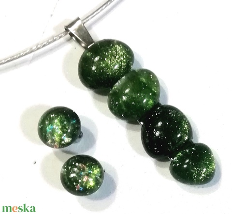 AKCIÓ! NEMESACÉL! Zöld fények, kavicsos üvegékszer szett.