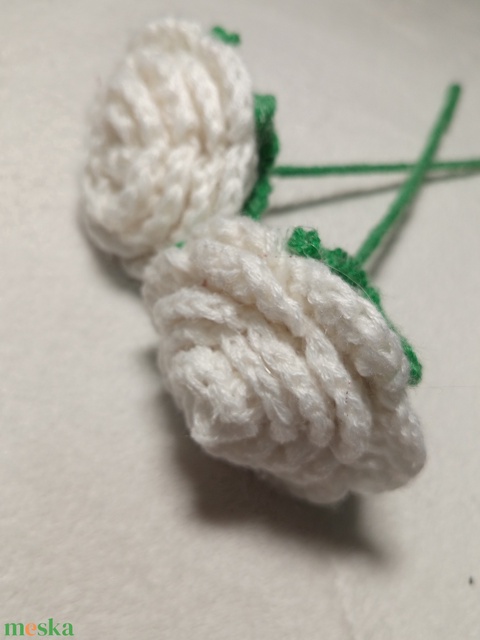 Horgolt fehér rózsa szál