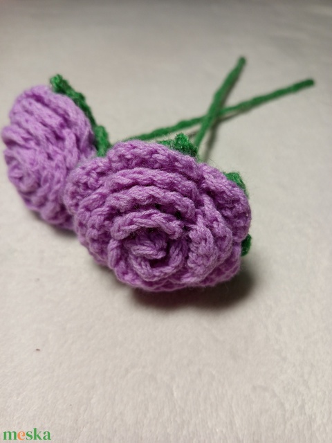 Horgolt lila rózsa szál