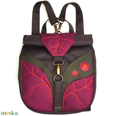- Anyaga: gyöngyvászon, heveder, cipzár, cérna, fém karabíner, műbőr, flíz, vízlepergető vászon